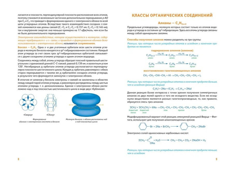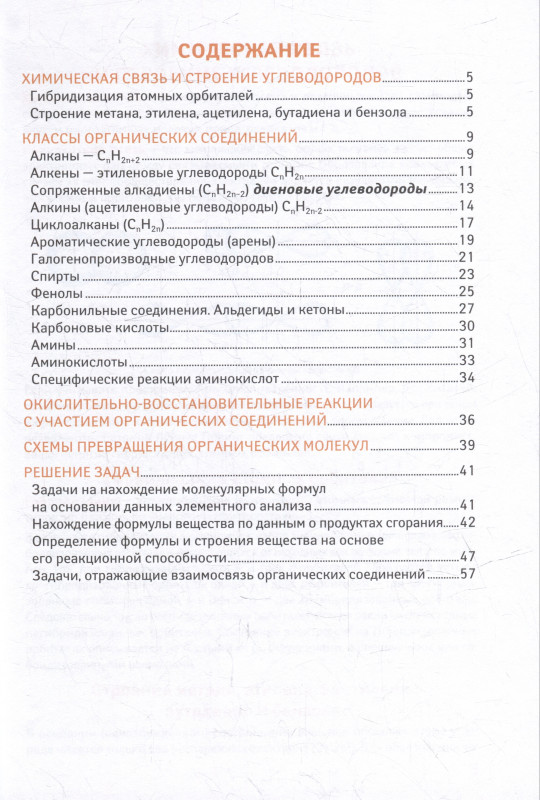 Справочное издание для подготовки к ОГЭ и ЕГЭ по органической химии в объеме несколько большем, чем по программе средней школы. Здесь в наглядной форме описано строение родоначальных углеводородов, в том числе соединений с открытой и замкнутой цепью сопряжения -бутадиена и бензола. В виде схем представлены способы получения и химические свойства классов соединений от алканов до аминокислот.