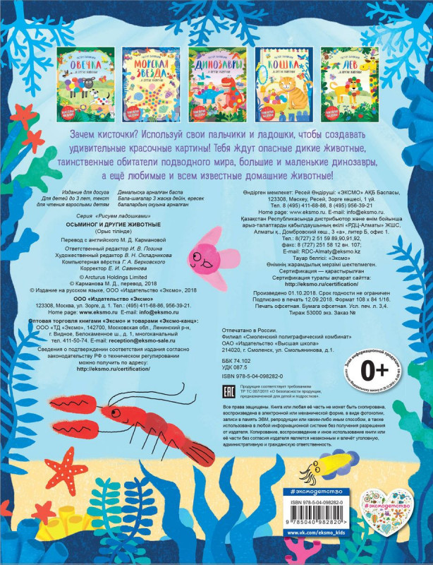 Внутри книг ты увидишь пошаговые иллюстрированные инструкции, как красиво нарисовать животных. Осваивай различные техники рисования, оставляй отпечатки пальцев и ладошек, экспериментируй с красками и просто веселись от души! Книги серии «Рисуем ладошками» не просто научат малышей рисовать, но помогут развить художественный вкус ребенка, его фантазию и тактильные ощущения.