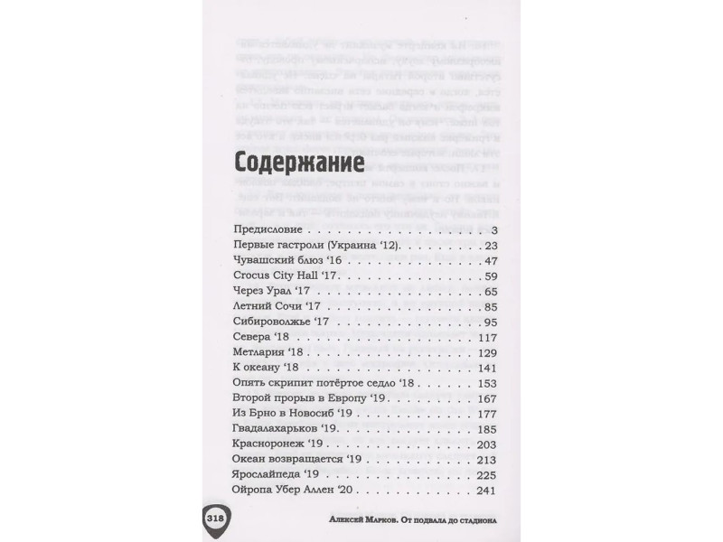 «От подвала до стадиона» — История успеха музыкальной группы, фронтмэном которой является Алексей Марков. Группа отжигает по всему миру от Сантьяго до Владивостока, сверхтехнично исполняя легендарный альбом Metallica 1999 года – «S&M» с симфоническим оркестром. Самый большой концерт – Arena Riga на 7000 зрителей. Автор делится лайфхаками как успешно отыграть концерт, чтобы зритель не просто был доволен, а реально угорел! Какие курьезы будут поджидать на гастролях и при переездах, как уместить, довезти и вытащить весь музыкальный инструмент из автобуса и при этом ничего не забыть. Не книга, а чек-лист для жаждущего славы музыканта!