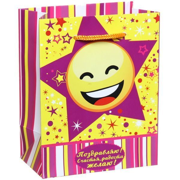Пакет подарочный 11х14 см вертикальный "Поздравляю! Счастья радости желаю!", Смайлы
