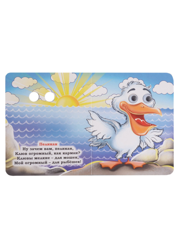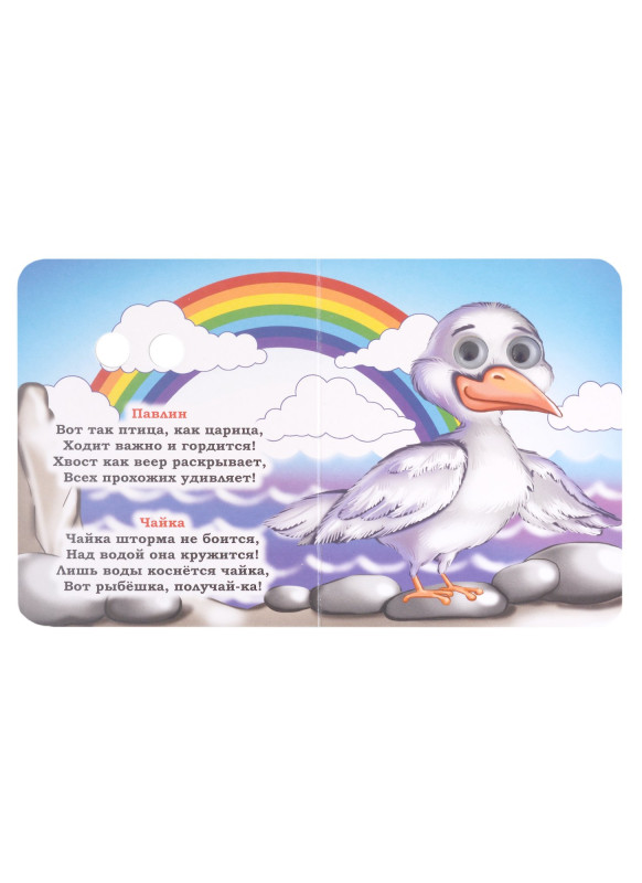 Серия книг "Веселые глазки" - это книжки, которые в буквальном смысле смотрят на вашего малыша и зовут его знакомиться с миром. Благодаря глазкам эти небольшие книжки превращаются в игрушки: стоит перелистнуть страничку, и на ребенка теми же глазками уже поглядывает новый герой. Книги подходят для самых маленьких, ведь они сделаны из плотного картона. Красочные иллюстрации и забавные стихотворения расскажут малышу обо всем том, чего он пока не знает. Книги предназначены для чтения взрослыми детям.
