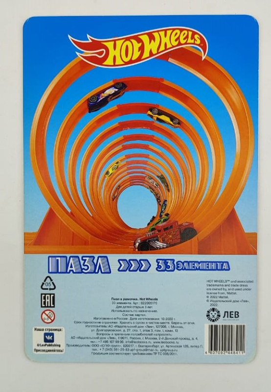 Пазл в рамочке. Hot Wheels (пазл 33 элемента)