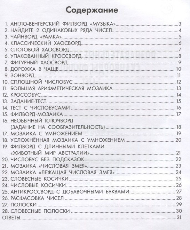 Перед вами чудесный сборник кроссвордов и других задач со словами и буквами, а также с числами и геометрическими фигурами для детей 7-8 лет.