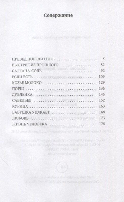 В сборник прозы Анны Козловой вошли повесть «Превед победителю» и рассказы, написанные в разные годы.