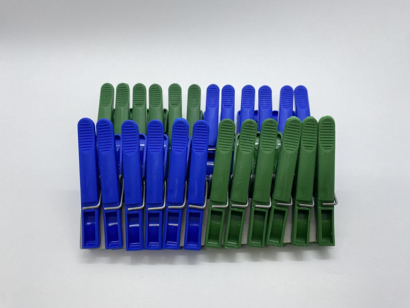 Прищепки пластмассовые зелено-синие 24 шт/уп.