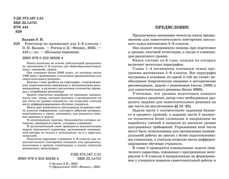 Книга дает возможность школьникам мгновенно найти нужную информацию, повторить забытый материал, подготовиться к уроку, вспомнить, как решаются типовые примеры и задачи. К олимпиадным задачам, большинство которых авторские, приводятся ответы, указания и решения. В заключительной главе приводятся занимательные задачи творческого характера, вызывающие повышенный интерес не только у школьников, но и у взрослых читателей. Репетитор адресован учащимся 5-6 классов для самостоятельного повторения основных тем программы, подготовки к урокам, олимпиадам, а также учителям математики, репетиторам.