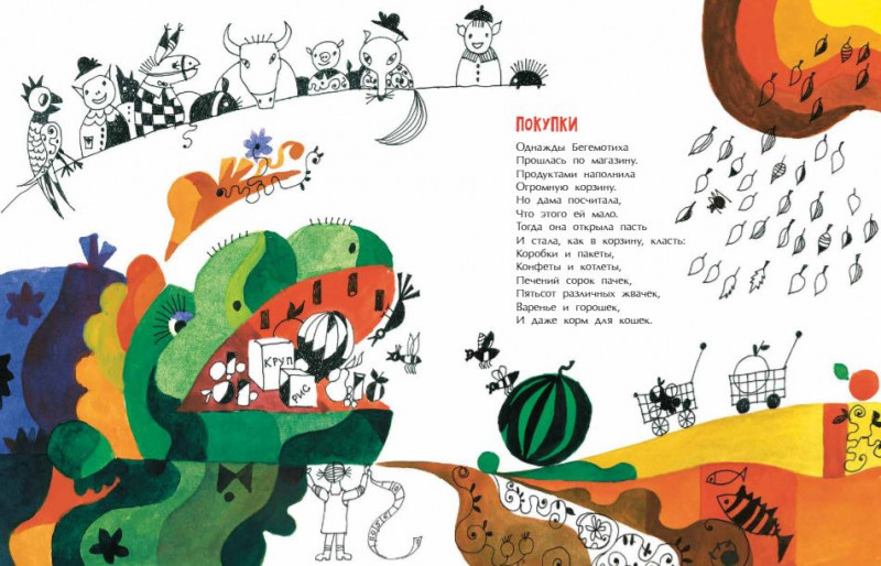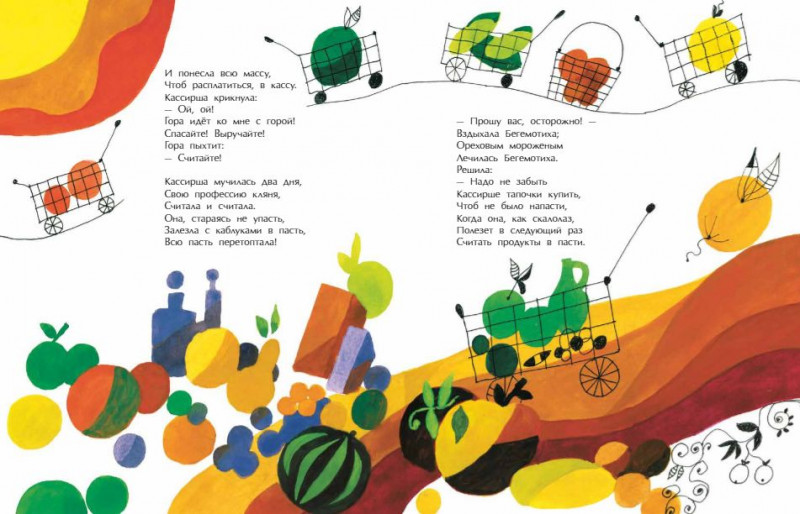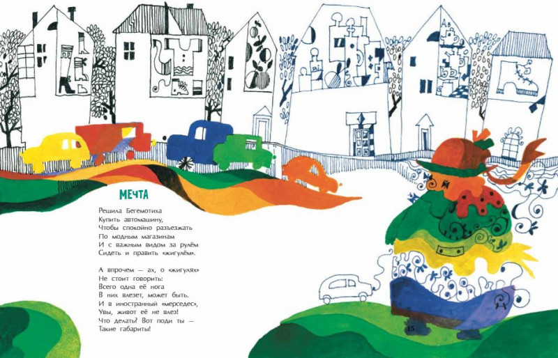 Эта книга не может не понравиться детям. Весёлые стихи, яркие забавные рисунки, а главное, запоминающаяся и очень симпатичная героиня - большая-пребольшая Бегемотиха, весьма энергичная современная дама, с которой то и дело что-то приключается. Она шьёт себе обновки, бегает в магазин за покупками, лезет в тесный трамвай, осваивает автомобиль, сооружает в квартире новую ванну… И всё это оборачивается настоящим фейерверком событий, очень похожих на увлекательную детскую игру.