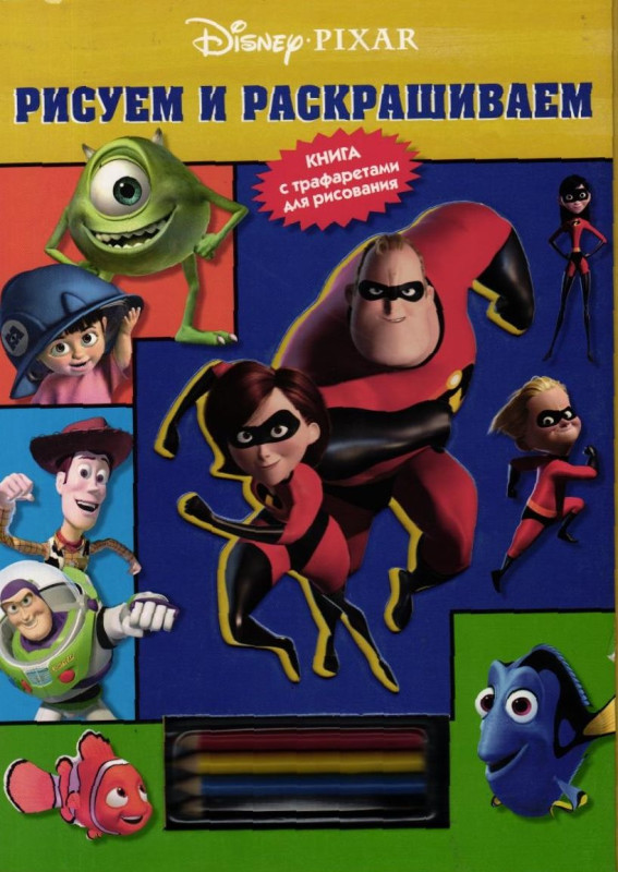 Рисуем и раскрашиваем Любимые персонажи мультиков 1 (книга с трафаретами для рисования + 4 карандаша) (Эгмонт)