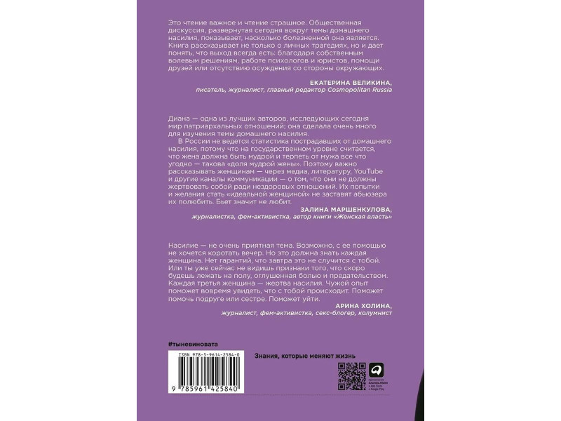 С14 Ты не виновата: Почему домашнее насилие — это не про любовь / Садреева Диана. — М. : Альпина Паблишер, 2020. — 244 с.