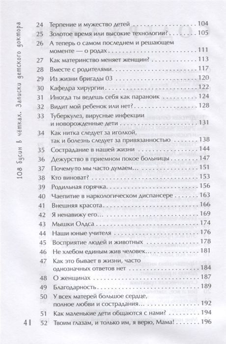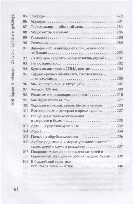 "108 бусин в чётках. Записки детского доктора" - это книга с размышлениями детского врача о жизни, о том, где начинаются болезни взрослых и детей, о том, как можно изменить течение жизни и избавиться от причин болезней и бед. Около 2600 лет тому назад Учитель Будда Шакьямуни показал людям множество путей избавления от страданий. Буддийские чётки, состоящие из 108 бусин, - это способ избежать страдания через размышления о его причине, основанный на личном опыте самого человека. Каждая бусина - это история, прожитая и выстраданная детским врачом, из которой он выносит какую-то драгоценность и для себя, и для других. Автор учит читателя создавать свои чётки. Потом, перебирая чётки собственных воспоминаний, человек укрепляется в мыслях, что где-то необходимо поменять свое поведение, и не падает раз за разом в одну и ту же яму ошибок, а, вспоминая все то доброе и светлое, что было у него в жизни, избавляется от одиночества, становится уверенным и сильным и начинает ценить то, что у него уже есть.