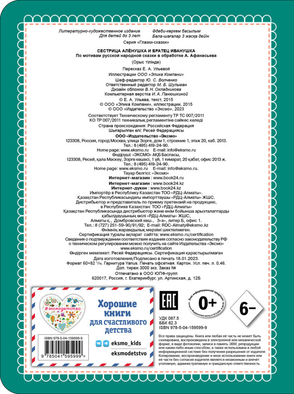Русская народная сказка «Сестрица Алёнушка и братец Иванушка» представлена в самом удобном для малышей формате — прочные картонные страницы, закруглённые края, красочные иллюстрации. А чтобы ребёнку было ещё интересней знакомиться с историей, на каждом развороте у героя есть подвижные пластиковые глазки.