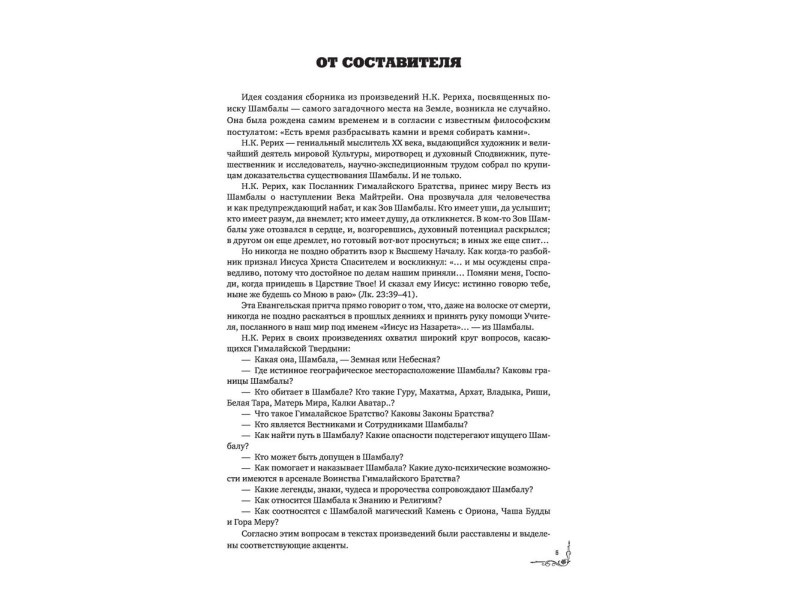 Перед вами уникальный сборник работ Николая Рериха, посвященных поиску Шамбалы. В книгу включены эссе и листы знаменитой азиатской экспедиции, а также рассказ Павла Бажова «Дороге имячко», созвучный прдставлениям Николая Рериха о мистической горной стране. Кроме того издание снабжено репродукциями картин Рерихов.