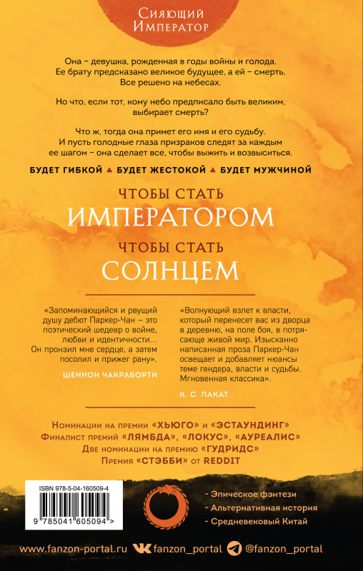 «Волнующий взлет к власти, который перенесет вас из дворца в деревню, на поле боя, в потрясающе живой мир. Изысканно написанная проза Паркер-Чан освещает и добавляет нюансы теме гендера, власти и судьбы. Мгновенная классика». — К. С. Пакат