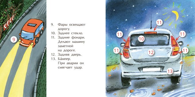 Эта книга непременно станет любимой у мальчишек! Здесь не только детально показано устройство, но и рассказывается о том как ухаживать за машиной и какие бывают знаки дорожного движения.