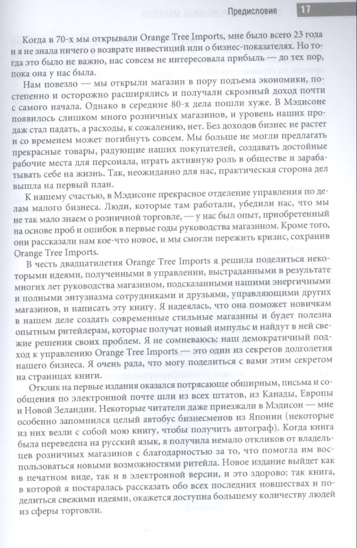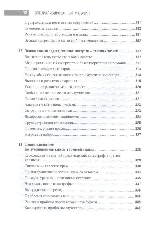 УДК 339.37 ББК 65.422 Ш85 Редакторы Е. Малыгина, Н. Казакова Перевод с английского Т. Овсенева, Л. Смилевска Шредер К. Ш85 Специализированный магазин: Строим успешный розничный бизнес / Кэрол Шредер ; Пер. с англ. — 4-е изд., доп. и перераб. — М. : Альпина ПРО, 2023. — 388 с. ISBN 978-5-206-00026-9 В этой книге есть все, что нужно знать владельцам специализированного магазина. Кэрол Шредер подробно и понятно рассказывает обо всем: от поиска своей ниши, выбора ассортимента и разработки реалистичного бизнес-плана до управления складом и сбытом, ведения учета и организации эффективной рекламной кампании. Кэрол Шредер заряжает читателей своей энергией, которая позволила ей создать один из самых успешных магазинов розничной торговли в Америке. В ее изложении управление собственным магазином — это не только прибыльный бизнес, но и захватывающий творческий процесс. Книга ориентирована на владельцев и ключевых сотрудников специализированных магазинов, предпринимателей, планирующих создать или приобрести розничный бизнес.