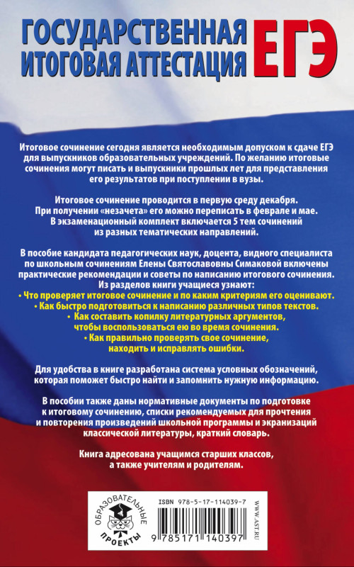Уценка. Симакова Елена Святославовна: ЕГЭ. Итоговое сочинение на "отлично"! перед единым государственным экзаменом