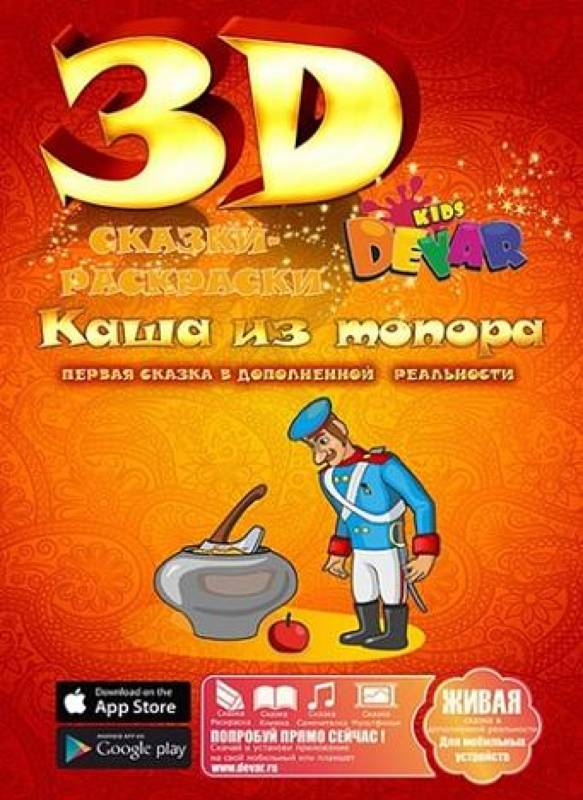 Сказка-раскраска представляет собой раскраску по мотивам одноименной русской народной сказки. В книге имеются как заранее раскрашенные страницы, так и те, которые необходимо раскрасить. Иллюстрации сопровождаются текстом сказки. Первая раскраска с дополненной реальностью! Шаг 1: раскрась страницы. Шаг 2: скачай бесплатное приложение DEVAR kids Шаг 3: Наведи телефон или планшет на страницу. Шаг 4: Смотри как персонажи оживают! Для младшего школьного возраста.