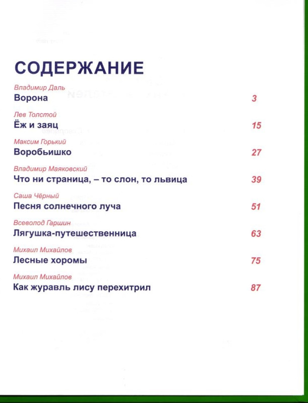 Добрые, умные и весёлые сказки русских писателей – Николая Некрасова, Владимира Даля, Льва Толстого, Ивана Крылова и других – понравятся малышам и научат их поступать хорошо. Замечательная подборка произведений рассчитана на детей разных возрастов: и дошколят, и учеников младших классов, а совсем крохи смогут с интересом рассматривать крупные картинки и учиться листать книгу. Иллюстрации, созданные Игорем Шляховым, есть на каждом развороте. Большой формат и яркое оформление сделают книгу удачным приобретением и замечательным подарком на праздник!