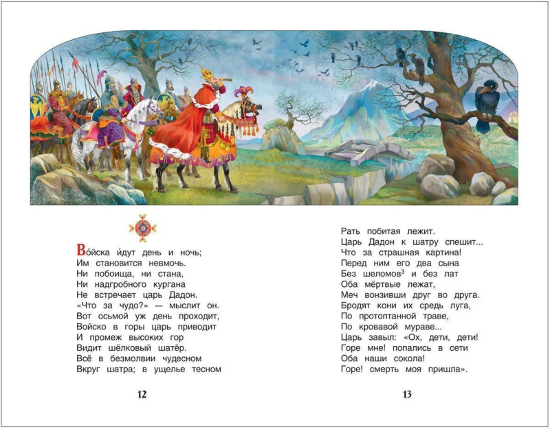 В книгу вошли сказки А.С. Пушкина «Сказка о золотом петушке», «Сказка о мертвой царевне и о семи богатырях», «Сказка о рыбаке и рыбке», «Сказка о царе Салтане, о сыне его славном и могучем богатыре князе Гвидоне Салтановиче и о прекрасной царевне Лебеди», «Сказка о попе и о работнике его Балде».