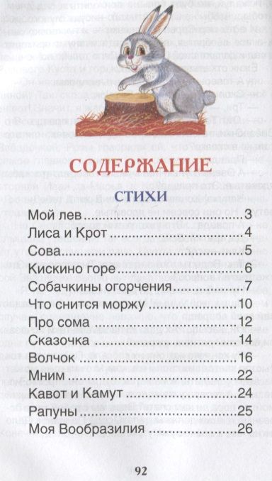 В сборник вошли замечательные стихи Бориса Заходера: «Собачкины огорчения», «Моя Вообразилия», «Морской бой», «География всмятку», «Кит и Кот» и многие другие, а также сказки «Русачок» и «Серая Звездочка».