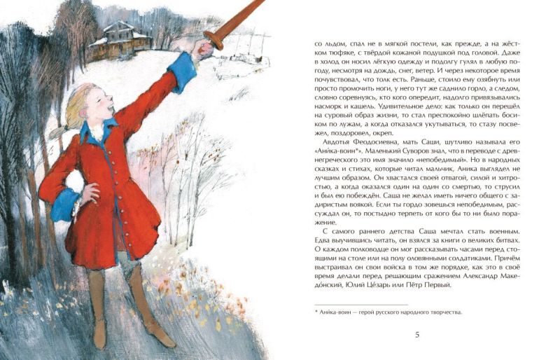 Великий полководец Александр Суворов был в детстве слабым и болезненным. Совсем не таким, как знаменитые герои, которым он хотел подражать. Но он мечтал быть военным! Став взрослым, Суворов не проиграл ни одной из своих битв. А началась эта история с того момента, когда маленький мальчик решил, что навсегда забудет слова «не могу».
