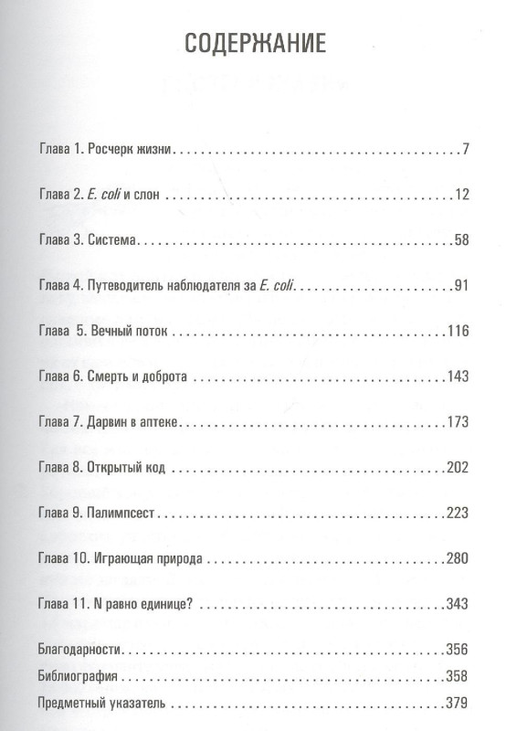 .Интересно, что Е. coli — общественный микроб. Автор проводит удивительные и тревожные параллели между жизнью Е. coli и нашей собственной жизнью. Он показывает, как этот микроорганизм меняется практически на глазах исследователей, раскрывая перед их изумленным взором миллиарды лет эволюции, закодированные в его геноме.