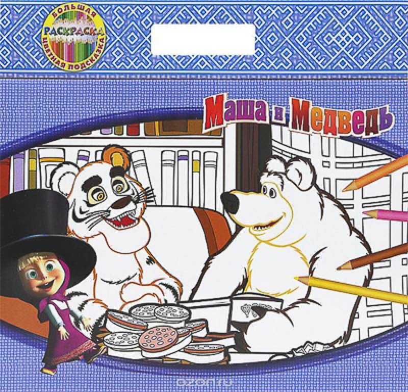 Усатый-полосатый. Маша и Медведь. Большая раскраска - цветная подсказка
