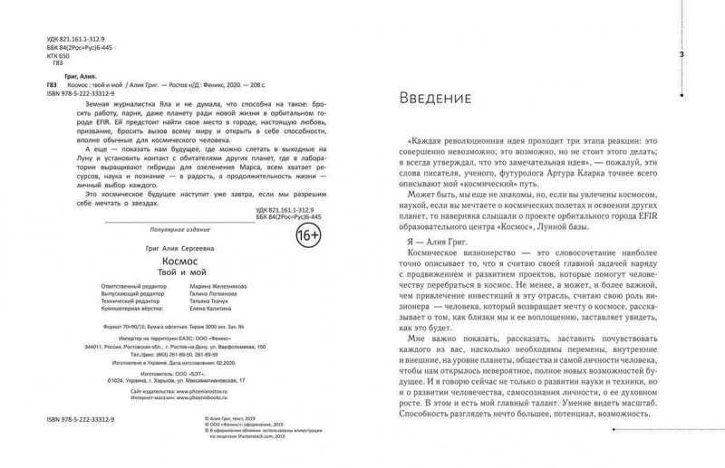 Земная журналистка Яла и не думала, что способна на такое: бросить работу, парня, даже планету ради новой жизни в орбитальном городе EFIR. Ей предстоит найти свое место в городе, настоящую любовь, призвание, бросить вызов всему миру и открыть в себе способности, вполне обычные для космического человека. А еще - показать нам будущее, где можно слетать в выходные на Луну и установить контакт с обитателями других планет, где в лаборатории выращивают гибриды для озеленения Марса, всем хватает ресурсов, наука и познание - в радость, а продолжительность жизни - личный выбор каждого. Это космическое будущее наступит уже завтра, если мы разрешим себе мечтать о звездах.