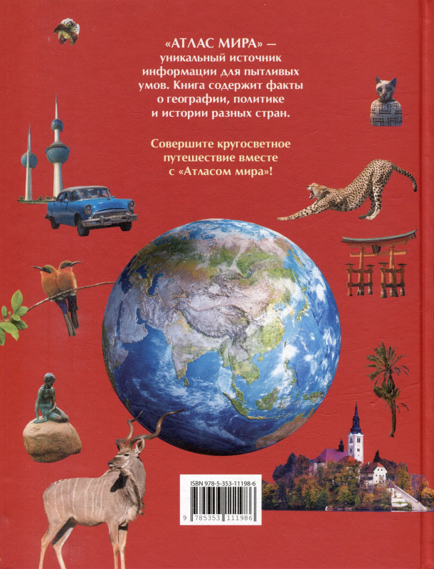 Атлас мира» — незаменимый источник информации для пытливых умов. В книге рассказывается о географии, политике и истории стран мира. На богато иллюстрированных страницах вас ждет увлекательная викторина. «Атлас мира» станет отличным подарком для всех, кто хочет узнать о большом и прекрасном мире, в котором мыживем.