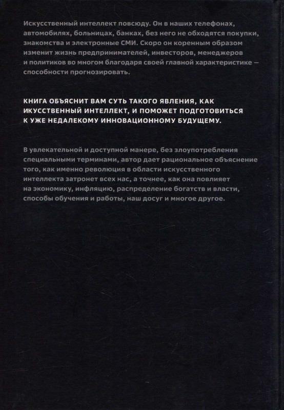 Современные технологии стремительно меняют наш мир, но насколько верно утверждение, что искусственный интеллект повлияет и на наши жизни? В этой книге, написанной известным британским экономистом, основателем и генеральным директором Capital Economics, крупнейшей в Европе консалтинговой компании в области макроэкономики, Роджером Бутлом, как раз дается ответ на этот важный вопрос. В увлекательной и доступной манере, без злоупотребления специальными терминами, автор дает рациональное объяснение того, как именно революция в области искусственного интеллекта затронет всех нас, а точнее, как она повлияет на экономику, инфляцию, распределение богатств и власти, способы обучения и работы, наш досуг и многое другое. Эта книга объяснит вам суть такого явления, как искусственный интеллект, и поможет подготовиться к уже недалекому инновационному будущему.