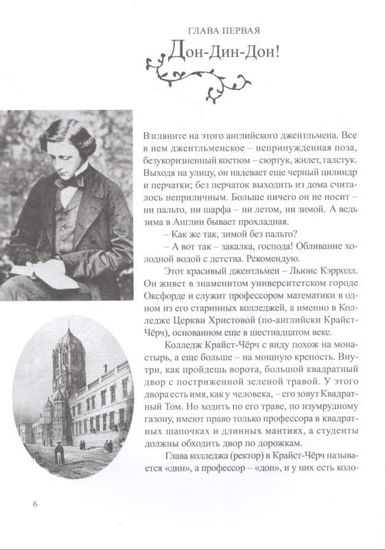 Вы, конечно, читали сказку о приключениях Алисы в Стране Чудес - и вторую сказку, где она проходит сквозь зеркало и оказывается в Зазеркалье? И вы, разумеется, помните, как зовут автора этих книг. Не правда ли, даже в его имени есть что-то волшебное - Льюис Кэрролл. Он был профессором математики, а еще сказочником и поэтом, и просто великим выдумщиком мастером придумывать всякие игры и головоломки Он даже изобрел круглый бильярд, в который любил поиграть после вечернего чая вместе со Шляпником и Мартовским Зайцем. Вообще, он любил все круглое и с детства мечтал отправиться в кругосветное путешествие, чтобы отыскать то место, где СЕГОДНЯ переходит в ЗАВТРА. Но потом понял, что незачем суетиться: ведь даже остановившиеся часы дважды в день показывают верное время. В то время как спешащие часы, если они забегают вперед даже на одну минуту в сутки, верное время покажут только через пять лет. Вот так и автор, который, может быть, потихоньку разыгрывает своего читателя и посмеивается над ним, нет-нет, да и скажет что-нибудь правдивое.