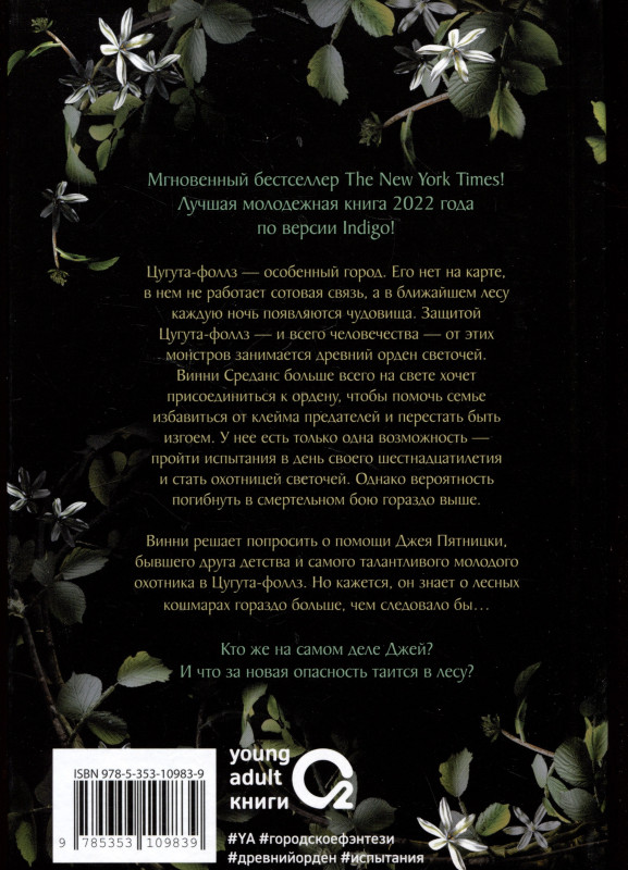 Первый том захватывающего городского фэнтези о древнем ордене, защищающем человечество от монстров и кошмаров, оживающих по ночам. Мгновенный бестселлер The New York Times! Цугута-фоллз – особенный город, которого нет ни на одной карте. Здесь не работает сотовая связь, зато каждую ночь из ближайшего леса появляются чудовища. Защитой города – и всего человечества – занимается орден светочей. Винни скоро шестнадцать, она может пройти испытание и присоединиться к ордену. Это ее единственный шанс избавиться от клейма предателя и перестать быть изгоем. Вот только вероятность погибнуть в смертельном бою гораздо выше. Девушка просит о помощи Джея Пятницки, бывшего друга детства и самого талантливого молодого охотника в Цугута-фоллз. Но кажется, он знает о лесных кошмарах гораздо больше, чем следовало бы… Кто же на самом деле Джей? И что за новая опасность таится в лесу? «Светочи» Сьюзен Деннард – лучшая молодежная книга 2022 года по версии Indigo, которую рекомендуют Ли Бардуго, автор «Шестерки Воронов», Мариса Мейер, автор цикла «Лунные Хроники», и Оливи Блейк, автор «Шестерки Атласа». Роман станет отличным подарком поклонникам серии «Орудия смерти» Кассандры Клэр и всем любителям фэнтези и приключений. #YA #городскоефэнтези #древнийорден #испытания
