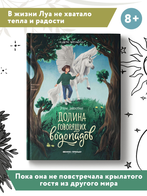 Захватывающее путешествие в другой мир, знакомство с невероятными героями и даже помощь в спасении волшебного мира - все эти приключения ждут главную героиню новой книги Этери Заболотной "Долина говорящих водопадов". История, написанная в жанре фэнтези, и иллюстрации Ольги Неходовой погружают в атмосферу нового мира, приключений и, конечно, волшебства!
