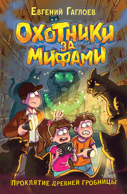 Четвертая книга популярной фэнтези-серии Евгения Гаглоева «Охотники за мифами» для детей 9-11 лет. Захватывающие приключения, новое детективное расследование и невероятное путешествие! Красочные иллюстрации в стиле комиксов и популярного мультсериала «Гравити Фолз», нарисованные Алисой Перкмини. Мировая сенсация! Неподалеку от знаменитых египетских пирамид обнаружен древний храм богини Сехмет. Можно ли пропустить такое событие?! Вооружившись камерами, Князевы отправляются за новым сюжетом для видеоблога. И вовремя! Кто-то задумал похитить бесценные амулет и скипетр, принадлежавшие когда-то жрице богини… Только злодеям не повезло! Любопытные Игорь, Максим и Кира твердо решили узнать, кто собрался похитить древние реликвии! Книги серии «Охотники за мифами» станут прекрасным подарком мальчикам и девочкам, подросткам-фанатам детективов и «Гравити Фолз». Они не только пробудят в детях страсть к чтению, но и помогут развить фантазию и дедукцию. Евгений Гаглоев – признанный мастер современной художественной литературы для детей и подростков в жанре фэнтези, автор циклов-бестселлеров «Зерцалия» и «Пандемониум», обладатель медали имени Н.В. Гоголя, лауреат конкурса «Новая детская книга», дважды победитель конкурса «Книга года: выбирают дети», лауреат литературной премии «Алиса». «Охотники за мифами. Проклятие древней гробницы» – книга в новом оригинальном оформлении выходившего ранее издания «Охотники за древностями. Магия Сехмет».