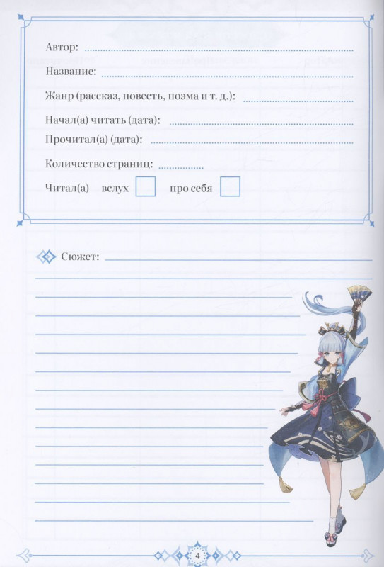 Читательский дневник - незаменимый помощник школьника любого возраста. Он поможет детям лучше понять и запомнить прочитанное, научит выражать свои мысли, рассуждать логически и обращать внимание на детали. Яркое оформление сделает заполнение дневника особенно приятным. Все страницы цветные и украшены изображениями героев из игры Genshin Impact.