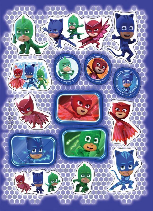 Коллекция ярких наклеек с героями любимого мультсериала «Герои в масках», которыми можно украсить комнату, тетради и игрушки.