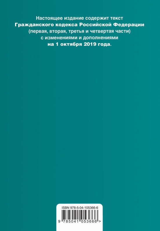 Настоящее издание содержит текст Гражданского кодекса Российской Федерации с изменениями и дополнениями на 1 октября 2019 года с удобной навигацией, таблицей изменений и путеводителем по судебной практике. Если есть изменения, вступающие в силу позднее, то вместе с редакцией нормы, действующей на эту дату, приводится норма в новой редакции и указывается дата, с которой она вступает в силу.
