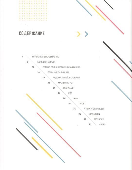 В этом издании вы найдете множество информации о популярных корейских артистах, от BTS и Red Velvet до TWICE и EXO, узнаете больше о песнях и личных историях звезд K-pop. Окунуться же в мир безумной индустрии вам помогут красочные фотографии!