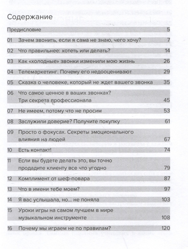 Идеальных «холодных» звонков не бывает. Бывают результативные. В этом убедилась Галина Хаустова, международный тренер-практик с 20-летним опытом в сфере работы контакт-центров. Из книги вы узнаете, как правильно начинать и заканчивать разговор, привлекать внимание и формировать доверие к вашим словам, эффективно реагировать на возражения клиентов и легко задавать правильные вопросы для получения конверсии. После прочтения книги и применения рекомендаций ваши собеседники перестанут раздраженно бросать трубку, вносить ваш контакт в черный список, а благодаря успешным скриптам вы сможете привести клиента даже в «холодном» звонке к продаже.