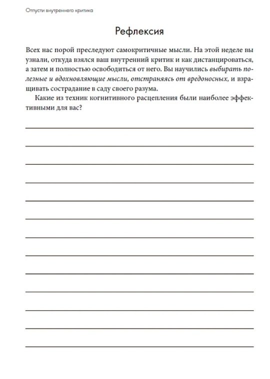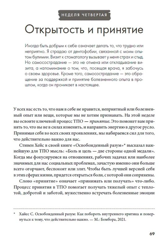 О чем Многие сравнивают свои достижения с чужими, что часто приводит к самобичеванию. Нам кажется, что если как следует отругаем себя за реальные и мнимые ошибки, то что-то изменится, однако в результате мы чувствуем себя нервными и измотанными. Клинический психолог Дайана Хилл считает, что эффективнее относиться к себе с пониманием и добротой, особенно в трудные моменты. Она предлагает техники из терапии, сфокусированной на сострадании, а также принятии и ответственности. Развивая бережное...