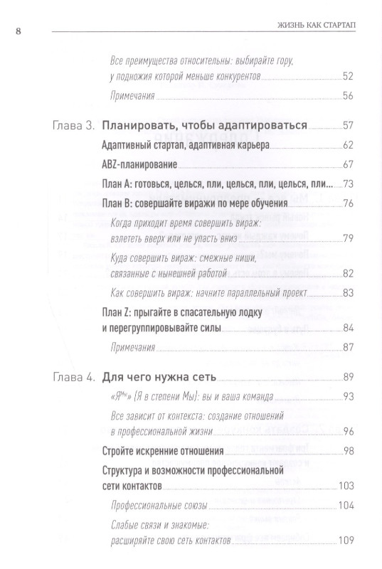 Карьера каждого человека по сути мало чем отличается от стартапа - в этом уверены авторы книги Рид Хоффман, основатель сети LinkedIn, и Бен Касноча. Успешные стартапы умеют быстро адаптироваться к обстоятельствам. Они не зацикливаются на однажды выработанной стратегии, а постоянно находятся в поиске новой идеи, нового рынка, новой возможности. Самые успешные люди действуют так же.