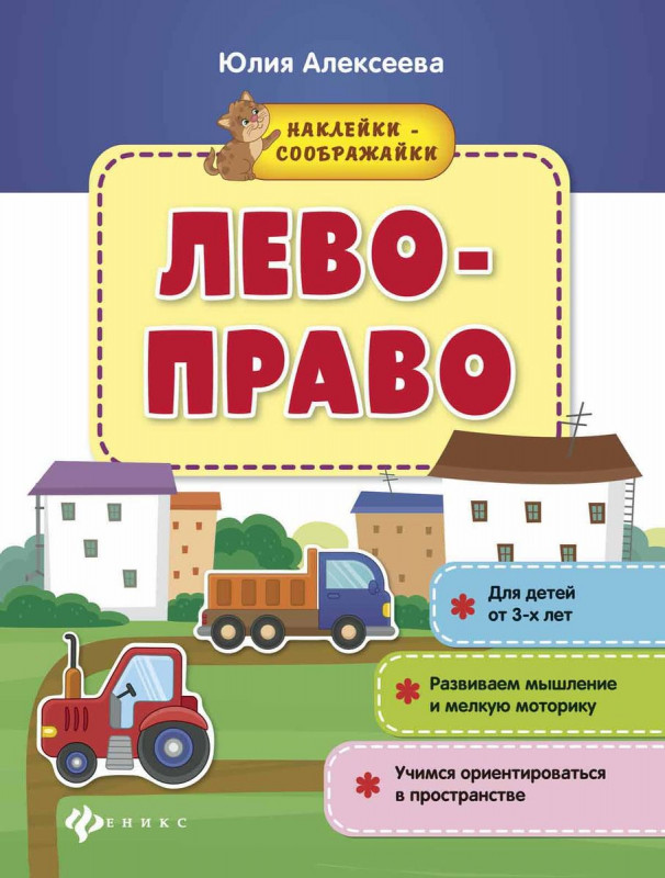 Серия "Наклейки-соображайки" рассчитана на детей от трёх лет. В книгах серии прорабатываются навык ориентации в пространстве (право-лево, верх-низ); логическое мышление, поиск общего и различного (найди отличия, спрячь лишнее). Используя наклейки для выполнения заданий, малыш не только тренирует мелкую моторику, но и лучше запоминает полученную информацию Автор книги Юлия Алексеева - мама, педагог и создатель авторской методики "ЯСАМ".
