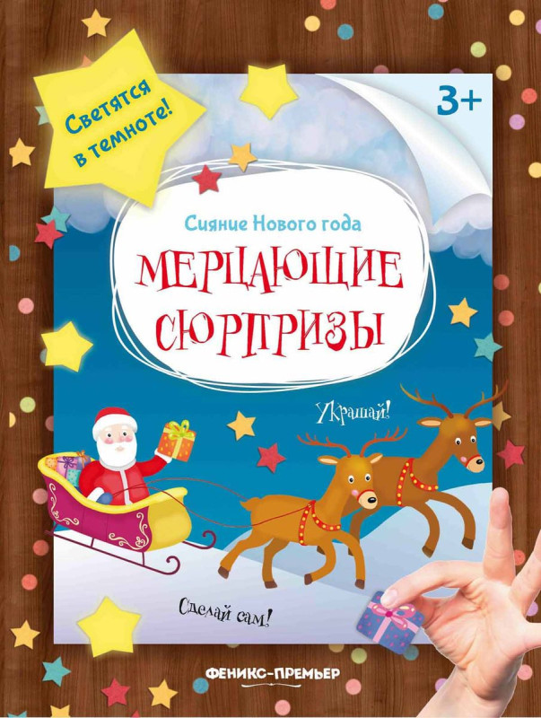 Серия «Сияние Нового года» содержит красочные заготовки для поделок, которые малыш может самостоятельно вырезать и склеить, а потом использовать в качестве подарка или украшения дома. А главное, что в каждой книжке есть наклейки, которые светятся, поэтому все сделанные игрушки и открытки будут красиво мерцать в темноте!