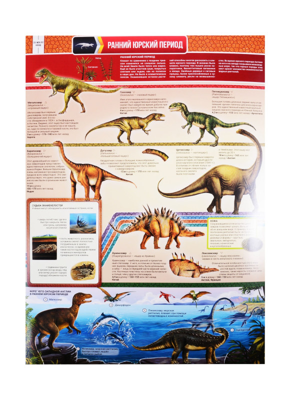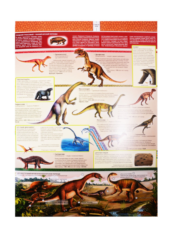 Это книга-раскладушка длиной более 3 метров, в которой известные науке динозавры расположены в хронологическом порядке. Красочные реалистичные иллюстрации дополняют данные о среде обитания, повадках и особенностях древних ящеров. Откройте книгу и погрузитесь в долгую историю существования динозавров, которая развернется буквально на полу вашей квартиры! переводчик А. Паевский