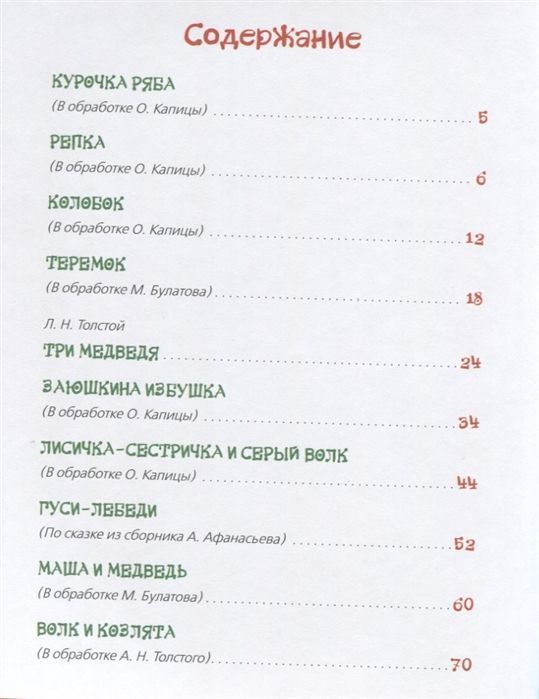 В эту книгу вошли самые известные русские народные сказки для малышей - о хитрой лисе и глупом волке, о Колобке, Курочке Рябе и Петушке - золотом гребешке, о косолапом мишке и о маленьких козлятах. Дети будут с удовольствием слушать любимые сказки, рассматривая чудесные иллюстрации Е. Здорновой и Л. Ереминой.