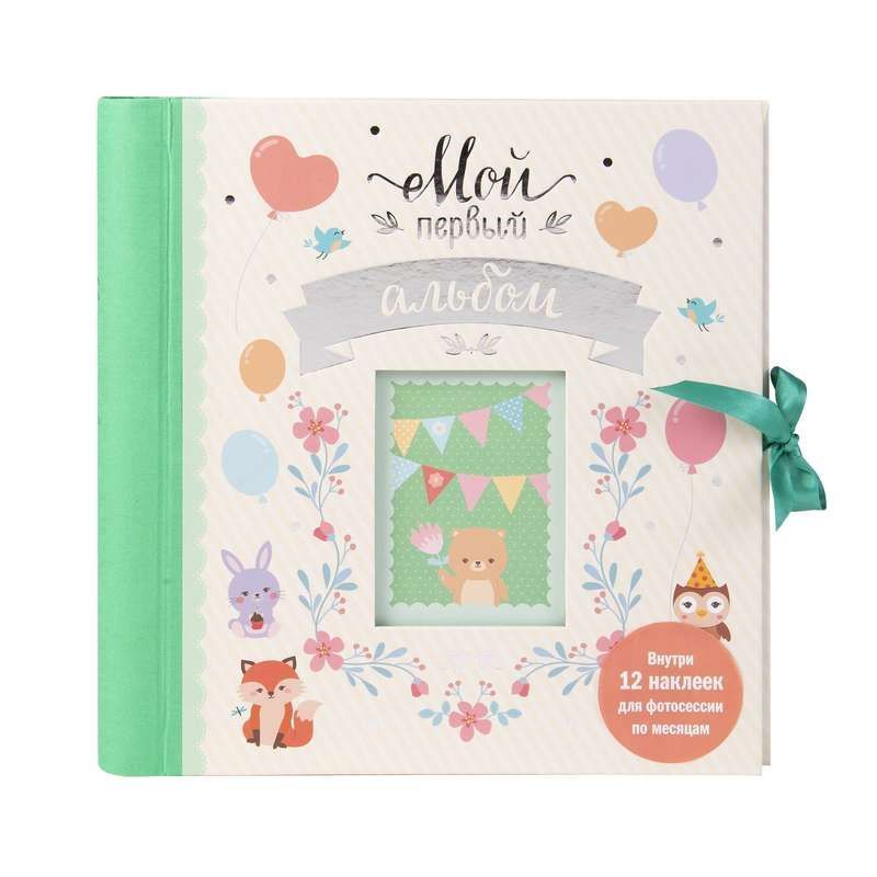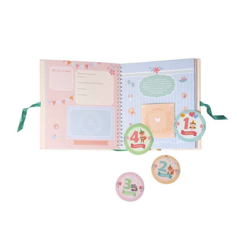 Замечательный подарок к рождению ребенка! В этом альбоме с нежными иллюстрациями есть все необходимое, чтобы сохранить драгоценные воспоминания о первом годе жизни малыша: конверты для памятных вложений, места для вклеивания множества фотографий и для записей о главных событиях первого года жизни. А на обложке - окошко-вложение для фотографии малыша. В альбоме Вы сможете записать, когда у малыша появился первый зубик, как менялись его рост и вес по месяцам, по какому адресу жили родители, когда младенец появился на свет, и многое-многое другое. Здесь даже есть разворачивающиеся странички, вмещающие на одном развороте сразу 12 фотографий, соответствующих 12-ти первым месяцам жизни ребёнка. Раскрыв их спустя время, Вы легко проследите, как быстро рос и менялся малыш в течение всего года. А еще мам и пап ждет приятный сюрприз - 12 крупных наклеек для фотосессий по месяцам!