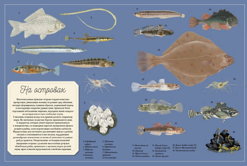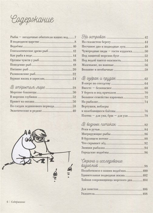 В книге собраны полезные факты и рисунки почти сотни рыб, обитающих в Северной Европе, проиллюстрированные чёрно-белыми рисунками Туве Янссон.