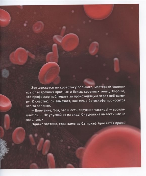Научно-популярный рассказ об иммунной системе в борьбе с опасным вирусом превращен автором в фантастическую историю о невероятном путешествии ребенка по телу заболевшего человека. Отправляйтесь и вы в познавательное путешествие в режиме реального времени! Вы проплывете по организму на волшебном батискафе вместе с уменьшенной до микроскопических размеров девочкой Зоей, чтобы узнать, как вирус ведет себя в теле человека и каким образом с ним могут справиться защитные механизмы организма.