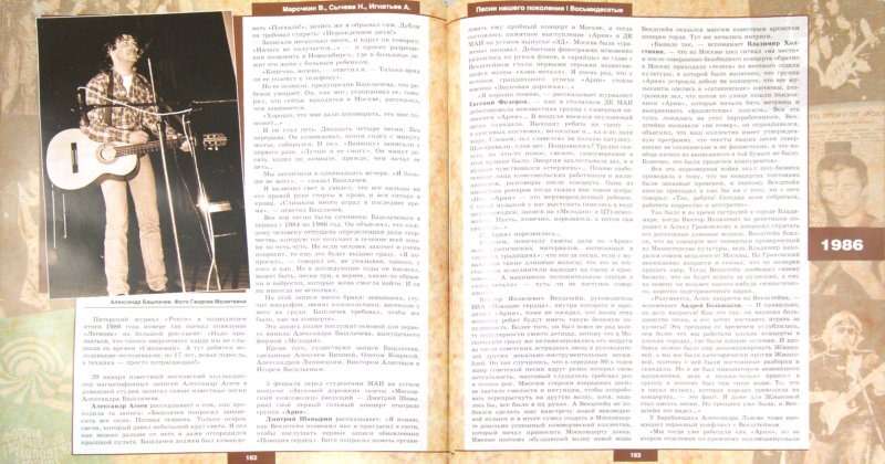 Книга "Песни нашего поколения. Восьмидесятые" рассказывает о том поколении, которое вошло в большую жизнь в 80-е годы. Эти молодые люди не были антисоветчиками, они просто хотели со своими подружками в воскресный день устроить танцы. И на этих танцах не происходило ничего такого, что не происходило бы в любом другом поколении молодежи. Парни и девушки знакомились, флиртовали, заводили семьи, рожали детей. Вот только почему-то им не танцевалось под вальс или фокстрот, а танцевалось именно под рок-н-ролл. Но тогдашняя власть с этим желанием была не согласна. И в итоге поколение 80-х создало свой, параллельный мир; со своими законами и традициями, героями, языком и модой. Есть такая теория, которая утверждает, что рок - это заменитель солнца в пасмурный день. Когда тучи закрывают небо, и просветов не видно, и лужи, грязь, слякоть и раскисший снег растворяют подметки на не очень новых ботинках, и мама далеко, то рок - это единственное, что еще способно согреть. Вот поэтому многие люди сегодня вспоминают об андеграунде 80-х с чувством теплоты и нежности, как о родном доме, где им было хорошо и тепло... Герои новой книги - "Аквариум", "Алиса", "Ария", "Араке", "Браво", "Воскресение", "Группа Стаса Намина", "Звуки My", "Кино", "Круиз", "Машина времени", Александр Барыкин, Марина Капуро и многие другие.