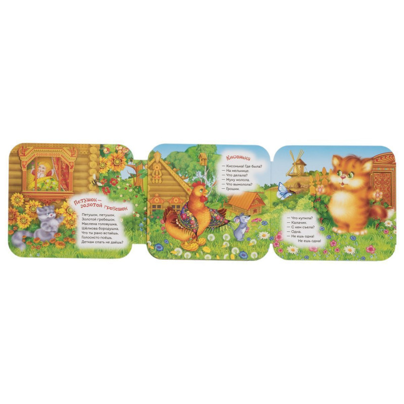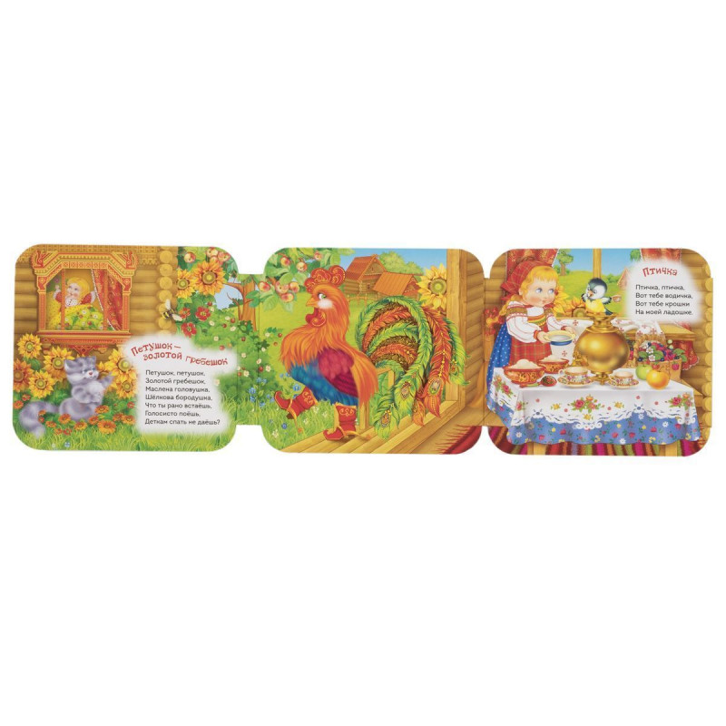 Эта книжка познакомит малыша с замечательными русскими потешками: «Петушок - золотой гребешок», «Птичка», «Кисонька», «Чики-чики-чикалочки», «Дождик», «Ай, дуду, дуду, дуду», «Конь ретивый». Книжка-гармошка с яркими, веселыми иллюстрациями прекрасно подойдет для совместного чтения и игры с ребенком.